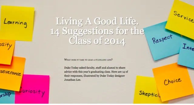 2014年,杜克大学的老师和教工们,给他们2014届的毕业生画了14幅漫画,讲述的他们对新一届毕业生的期许,也正是真正受教育者终其一生应该具备的思维方式。